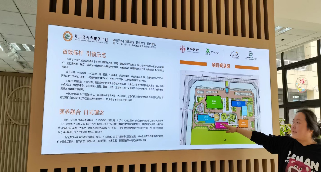 座谈会前,在养老服务中心教育研究部部长宋威葳的带领下,田奇恒一行参观了集“产、学、研”于一体的省级综合性养老示范项目—天易.天府颐园。