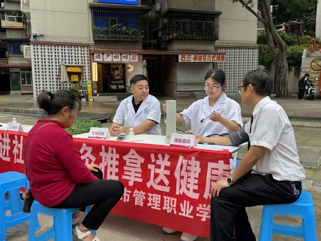 深入贯彻积极应对人口老龄化国家战略,推动专业服务融入社区基层,1017日,我院组织师生志愿服务队,在教师蒋宗伦的带领下,前往九龙坡区民主村建设渠广场,面向社区老年人与残疾居民开展了一场专业、暖心的为老医疗健康服务活动。