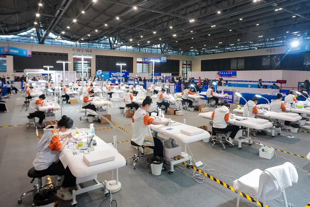 本届大赛由人力资源和社会保障部主办、河南省人民政府承办,以“技能照亮前程”为主题,共设106个竞赛项目(包括66个世界技能大赛选拔项目和40个国赛精选项目)。美容赛项直接对标世赛标准,以美容院真实服务项目为蓝本,严格遵循国际业界准则进行考评。选手不仅要有得体的职业风范,更需系统掌握医学、化学、美学等多学科知识,娴熟运用美容、美体、美甲、化妆、美睫等综合技能。此外,真诚的服务意识、良好的沟通能力等软实力同样至关重要,是对“技以载道,匠心至美”的完美追求。