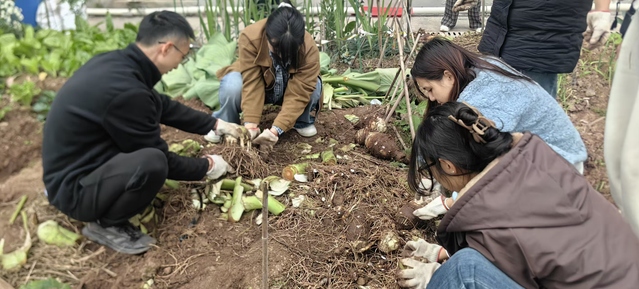 12 月 4日,我院党总支组织师生前往校内劳动教育基地,开展了一场别开生面的芋头采摘劳动实践活动——芋见青春·根植沃土。