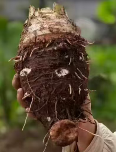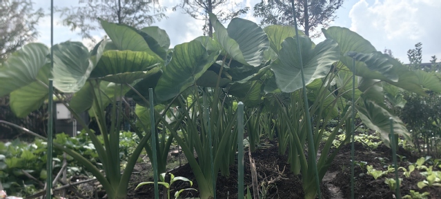 随着孙科老师一声令下,采摘活动正式开始。田间瞬间热闹起来,师生们分工协作、默契配合:有的弯腰用镰刀割芋叶;有的用锄头小心翼翼地松动土壤,为芋头“松绑”;有的徒手顺着芋叶根部向下探寻,轻轻拔出饱满的芋头;还有的负责整理、分类刚采摘的芋头,将带着泥土芬芳的芋母、芋子分类摆放。大家不怕脏、不怕累,脸上洋溢着劳作的喜悦,田间地头回荡着欢声笑语。期间,孙科老师不时穿梭在田间,手把手指导同学们纠正采摘动作,解答大家关于芋头种植、养护及营养价值的疑问,让同学们在劳动中不仅收获成果,更学到实用知识。
