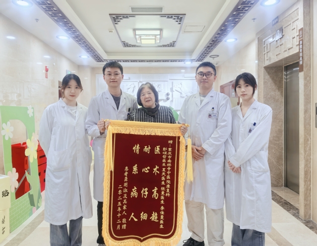 两家医院高度重视实习带教工作,为学生制定了“理论回顾+实操训练+病例讨论”相结合的培养方案。带教教师在传授临床经验的同时,注重培养学生独立思考和解决实际问题的能力,引导其将创新意识融入康复实践。同学们在实习中态度认真、主动学习、积极交流,展现出良好的专业素养与学习风貌,获得医院带教团队和患者的肯定。其中,学生李佳曼因服务细致、表现突出,获得了患者赠送的感谢锦旗。